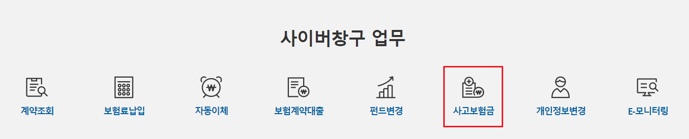ㄴ 메트라이프생명 홈페이지 접속 -> 사이버청구 업무 -> 사고보험금 -> 청구절차안내 (구비서류안내)