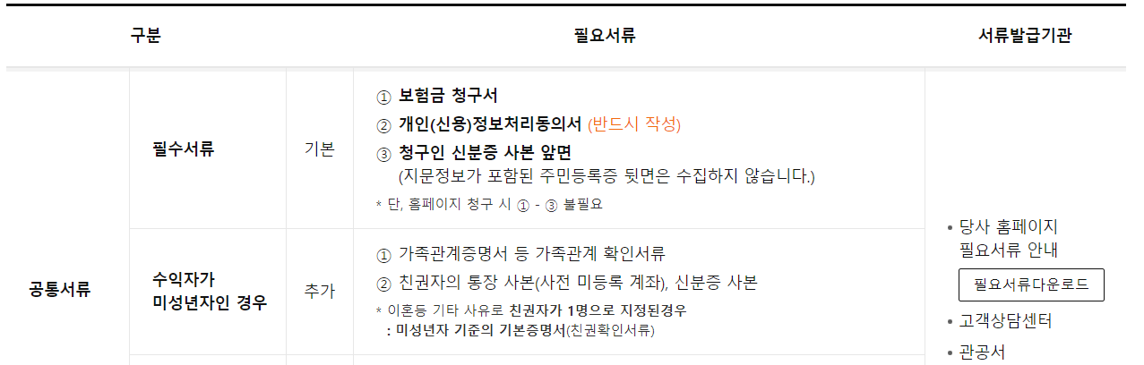ㄴ 한화손해보험 사이트 -> 필요서류안내 -> 질병 보험금