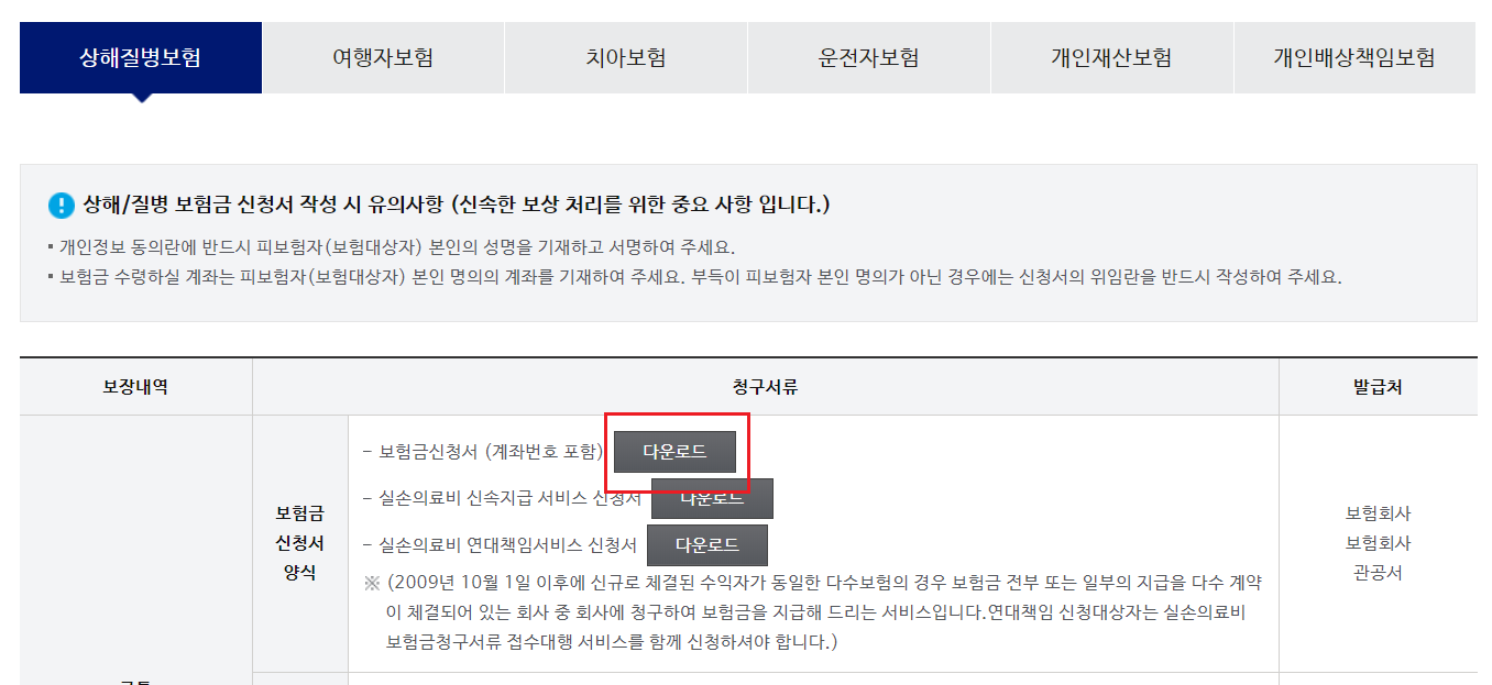 각 보험마다 청구서류가 달라서 헷갈려하시는분들이 많이 계십니다.