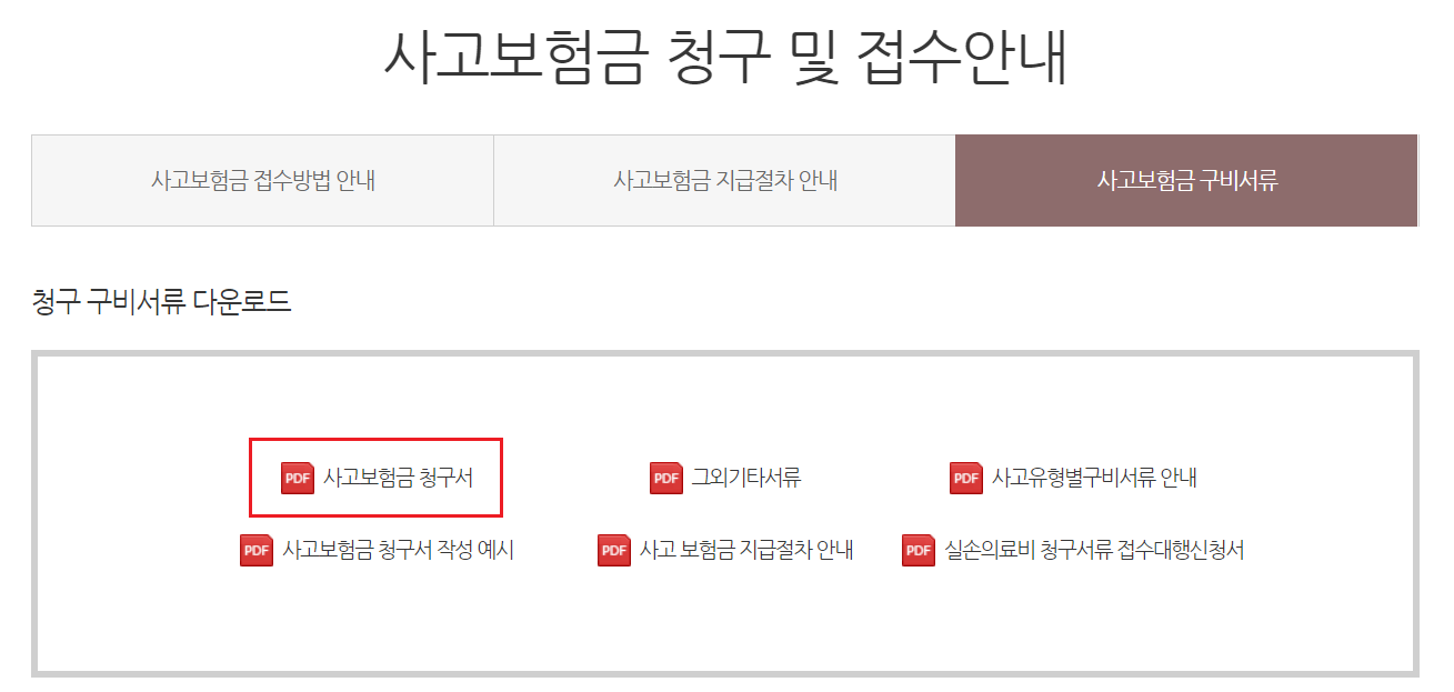 ABL 공식 사이트 -> 상단 카테고리 (고객센터) -> 사고보험금 청구 및 접수 안내 -> 사고보험금청구서 클릭