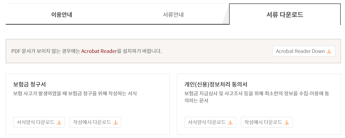 보험금청구서 & 개인(신용)정보처리동의서 다운로드 방법