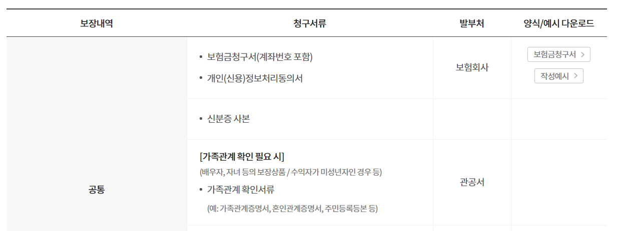 ◆ 공통서류 (보험금청구서/ 개인신용정보처리동의서) 다운로드 방법